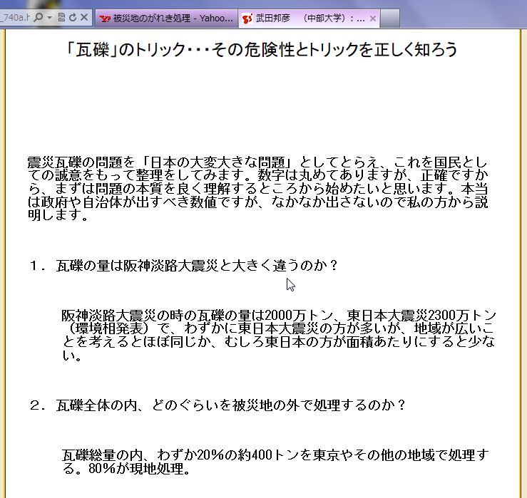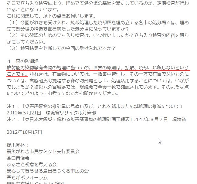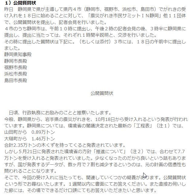 次は2012.10.17に震災瓦礫の広域処理について静岡県で出された公開質問状です。