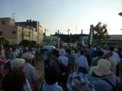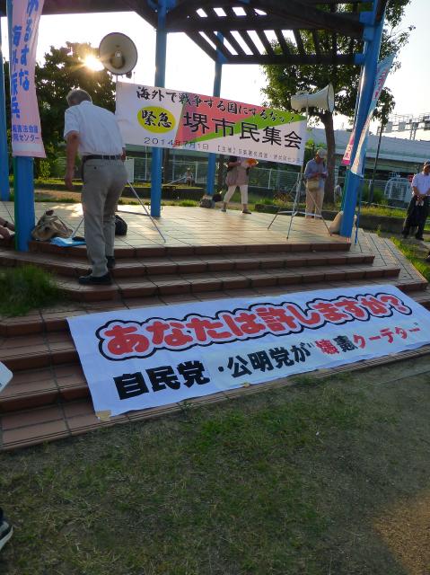 集団的自衛権行使容認閣議決定反対今日5:30頃、集団的自衛権行使容認が閣議決定された。 これは、憲法第9条の改定だ。 たかだか20人の閣僚だけで憲法を変えることになるとは腹立たしい限りだ。 主権者たる国民をなんと考えているのだ。国民を無視している。 憲法の改定は、憲法にのっとって最後は国民投票をするべきだ。それをしないで解釈改憲とはもっての外だ。憲法順守義務のある閣僚が憲法違反をするのは許されない。 黙っていると賛成していることになると思ったので、集団的自衛権行使容認閣議決定反対の集会とデモが堺東であったので参加してきた。 400人もの人が集まった。集会の後、デモで市民会館と市役所の周りをシュプレヒコールしながら歩いてきた。 写真をクリックすると大きくなります。 集団的自衛権行使容認閣議決定は憲法違反だという戦いはこれからだ。 |