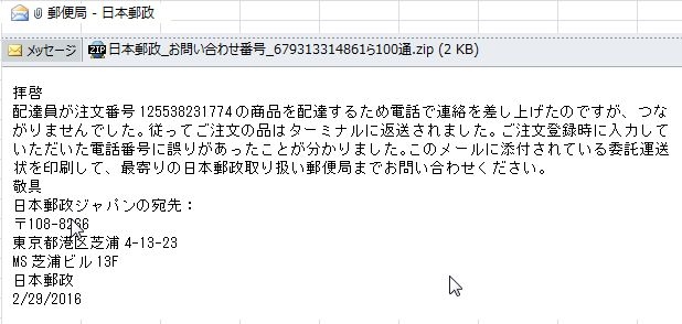 話は変わるが、昨日、次のようなメールが届いた。差出人は「郵便局・日本郵政」となっている。 |