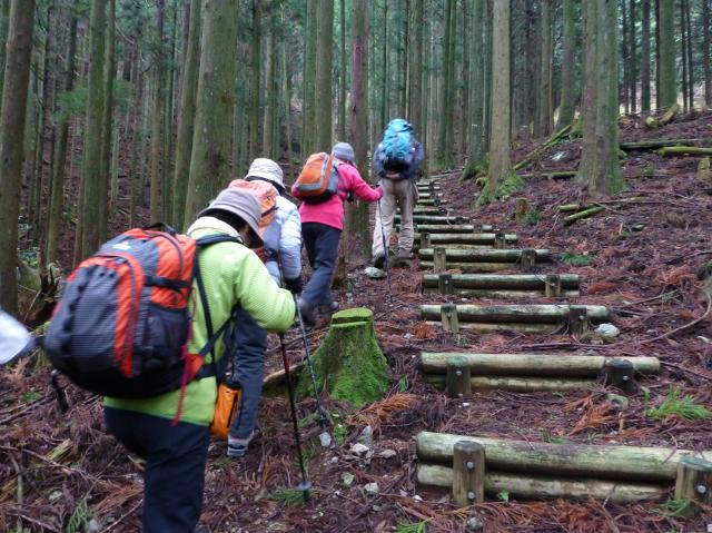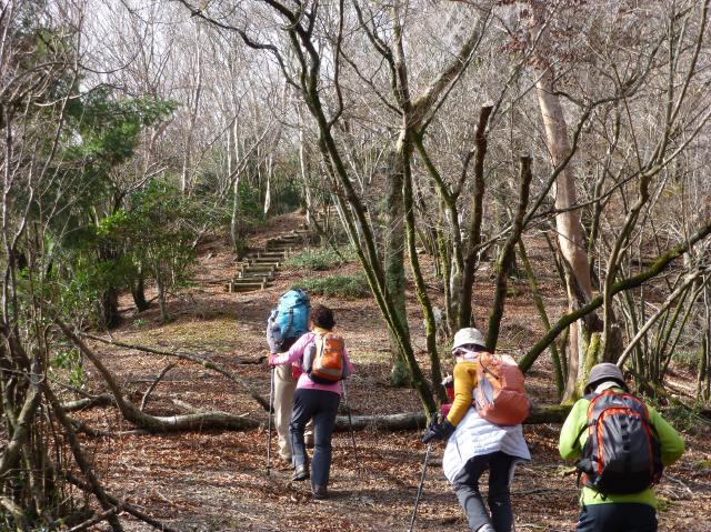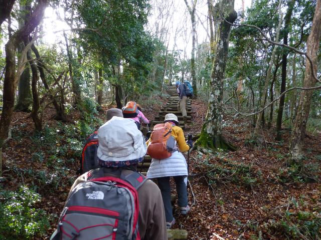 地図下部、森林公園駐車場からスタートした。赤い線がコースだが黄色の線の右回りに登った。