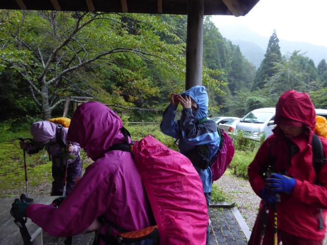 10:00に出発する。五番関までの道が急坂で、雨に濡れた木の根と岩の道で登りにくかった。