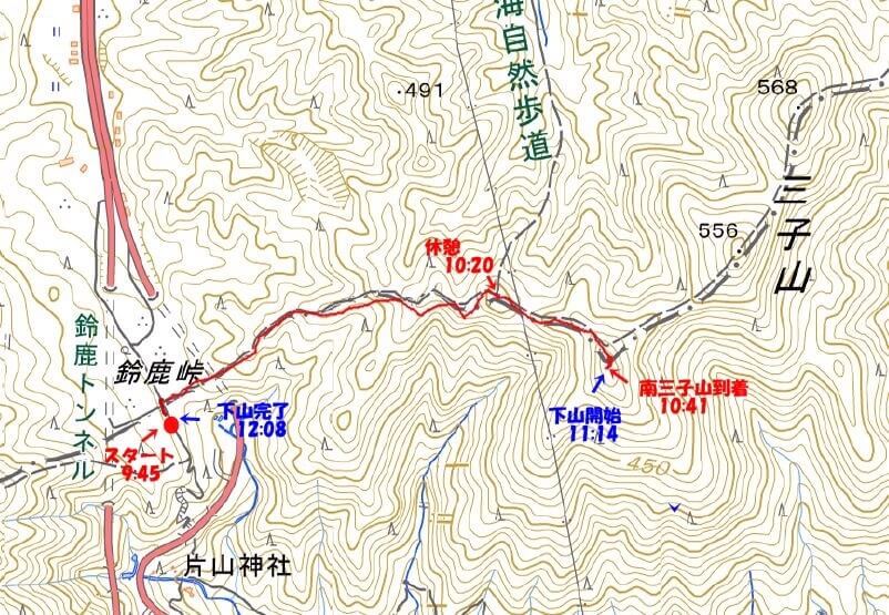 7:20にポリbox前を出発し、三子山への登山口に駐車したのが9:40頃。