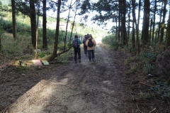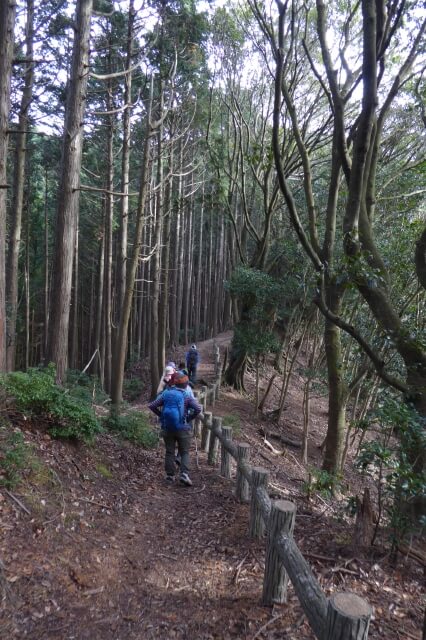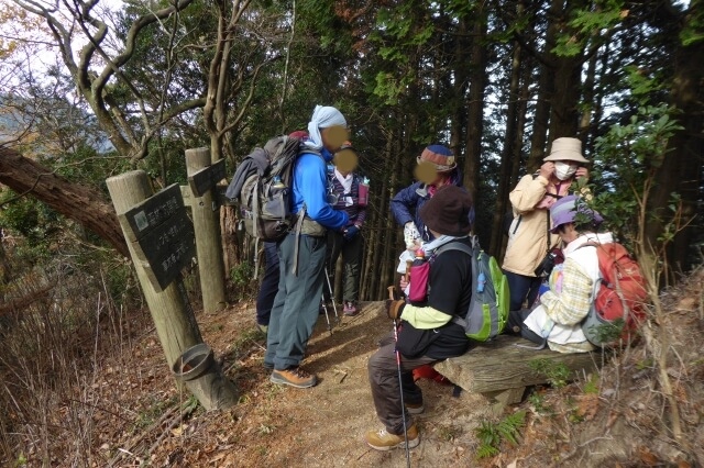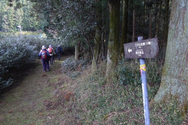急な階段を登りきったところで、三子山への道と東海自然歩道との分岐に着きました。
