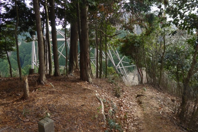 鉄塔の横の20m位を下り、三子山南峰への最後の登りに向かう。