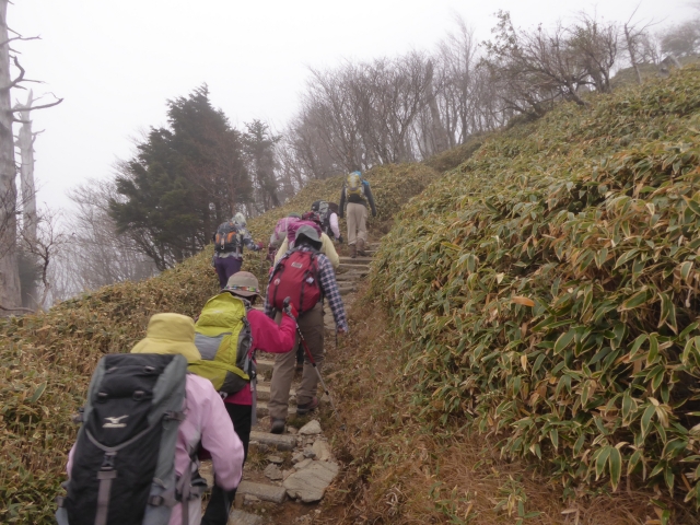 後 約200mの登山。この辺りから雲の中に入る。