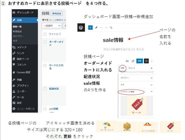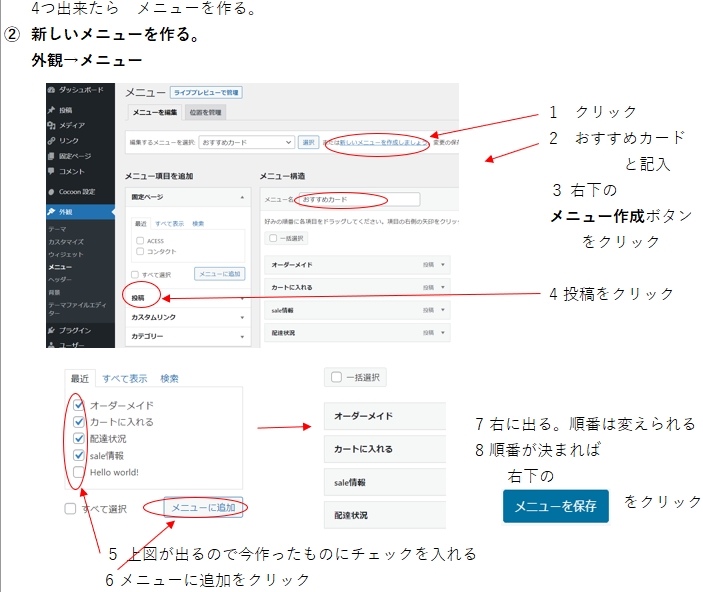 4つ出来たら、①の 外観→メニュー から始める。