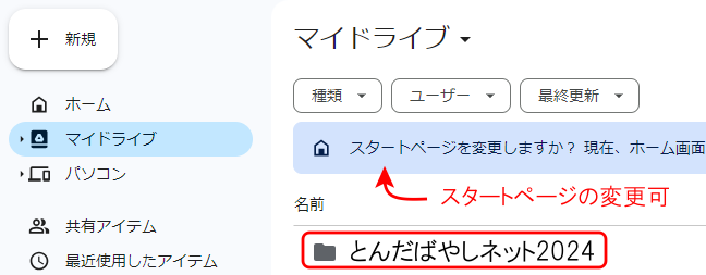 すると[マイドライブ]ページに とんだばやしネット2024 のフォルダーが作成された。(下図参照)