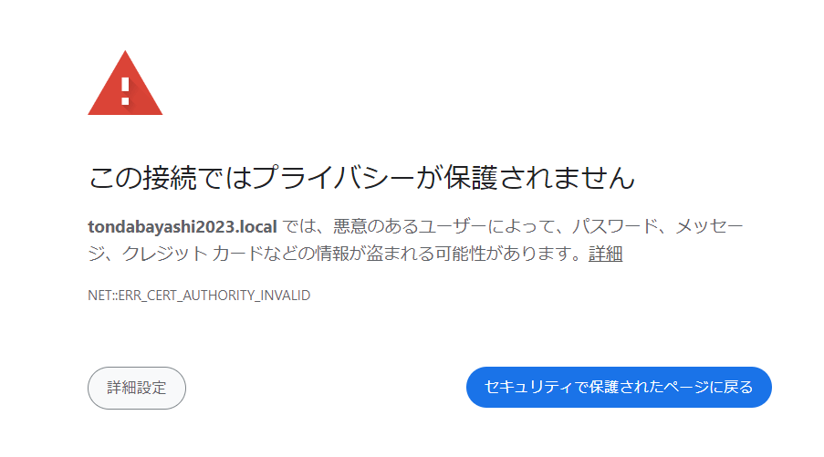 https 化して初めての保存になるので(←講義ではここからが先になされた)次のような警告が表示された