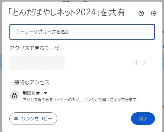 ユーザー名は入力せずに元の図にある[リンクをコピー]ボタンを * > クリップボードにとんだばやしネット2024のURLがコピーされる > (完了)*