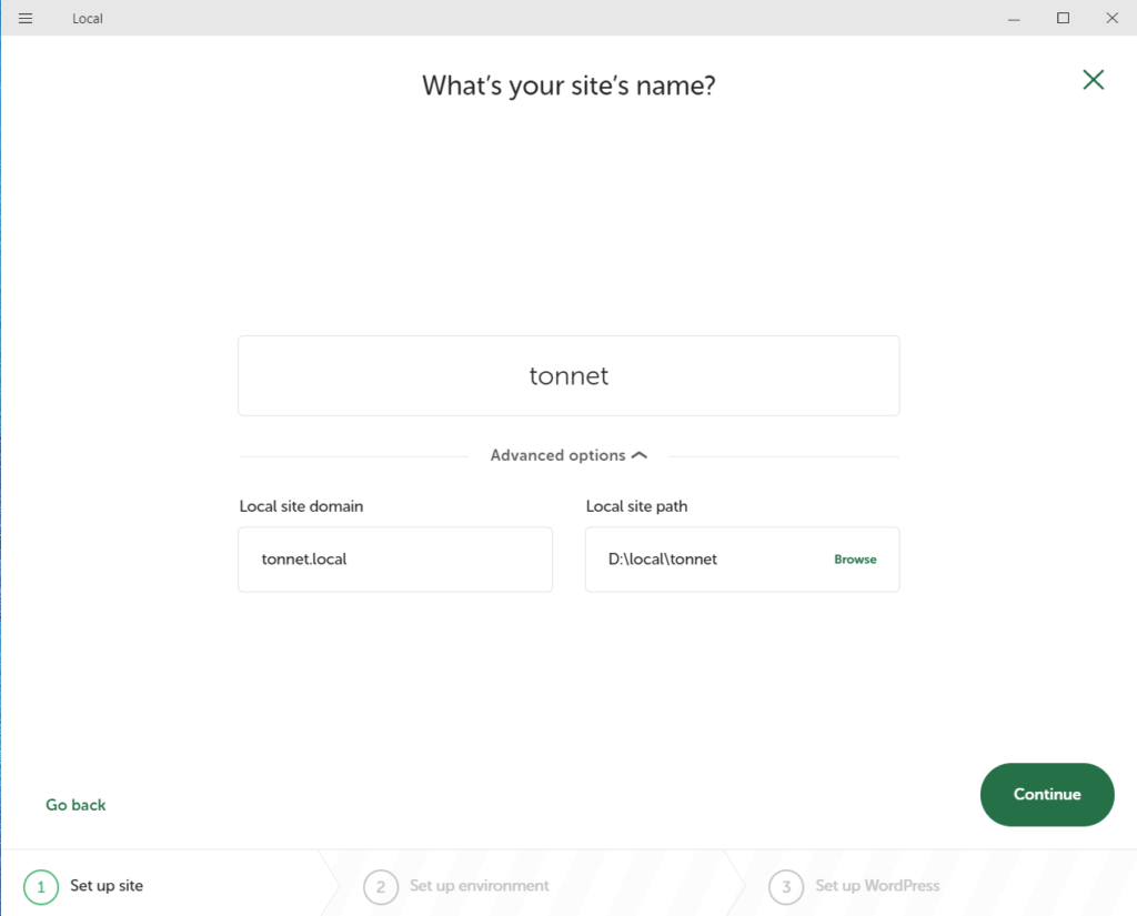 Create a new site が選択(図のように枠が付く)されているのを確認して(クリックで選択できる)、(Continue)*