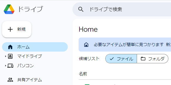 ドライブページに遷移 > スタートページである[ホーム]ページが表示されている。
