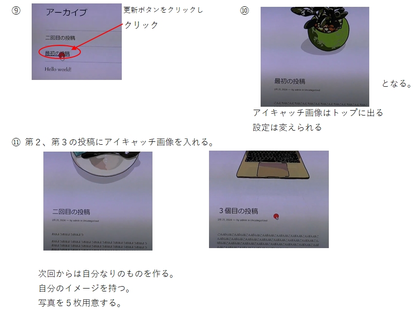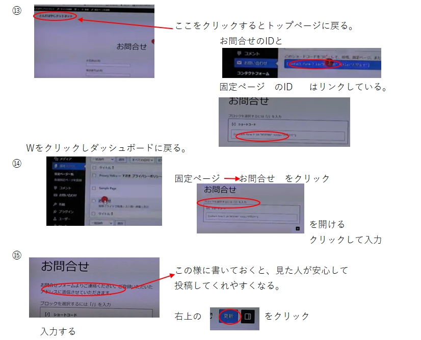 「お問合せ」の作り方と、アイキャッチ画像の設定の仕方についての講義でした。