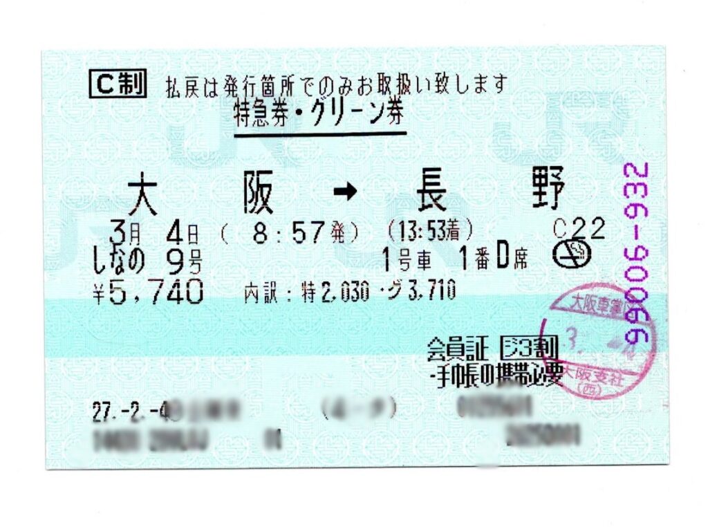 今回は、大阪から長野まで直通特急「ワイドビューしなの9号」が名古屋発に変わる前に乗り鉄(当時昼間特急最長距離:441.2㎞)と、北陸新幹線金沢延伸前に信越本線、北陸本線へ乗り鉄した時の長野までの様子です。