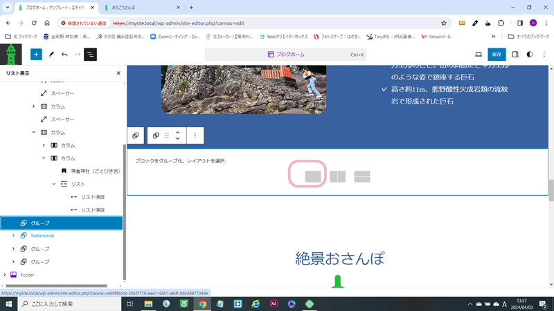 ・カラム数を変更するには、ギャラリーを選択した状態で右側の設定のカラム欄で好きな数に変更できる