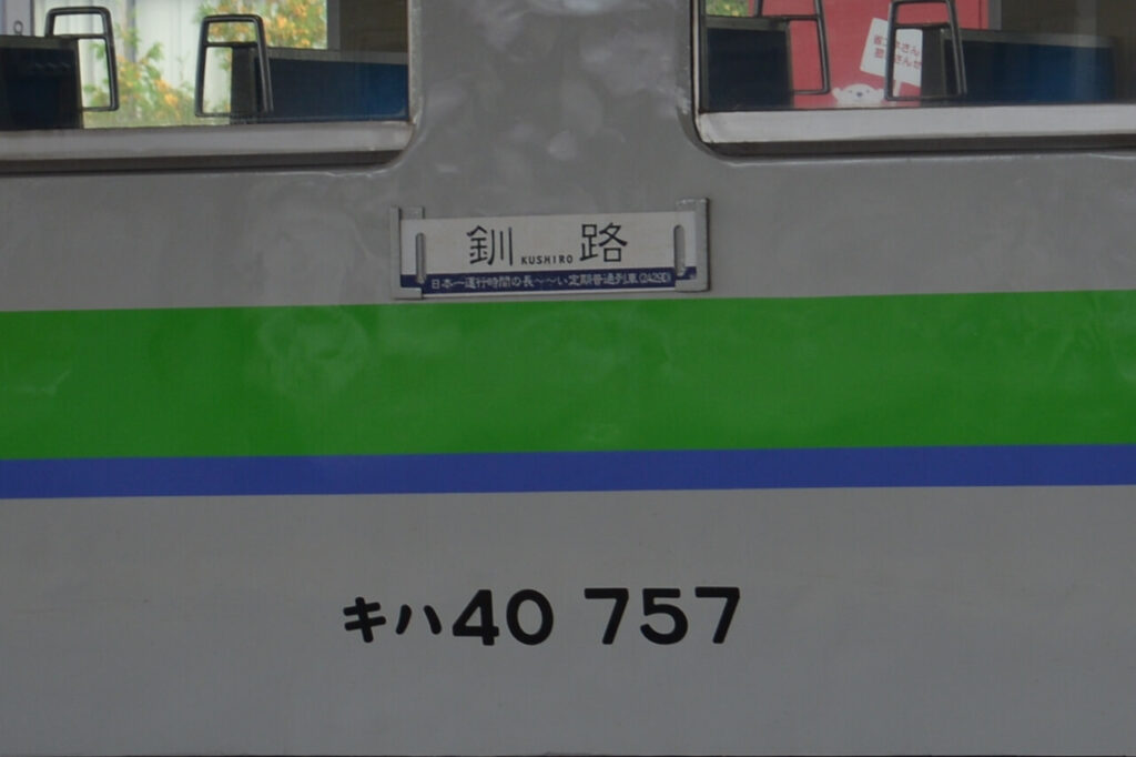 かつては滝川駅~釧路駅間で定期普通列車(2429D)が運転され、308.4㎞を所要時間8時間19分の日本最長時間の定期運用さている列車としてマニアに好評でした。2010年から(2016年に2427Dに列車番号を変更)滝川から釧路までの全線乗車時には「完全乗証明書」を発行していました。
