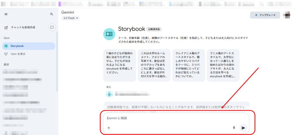 Gemini の「Storybook」機能を使うと、オリジナル絵本を自動生成できる・・という記事を読み早速、作ってみました。