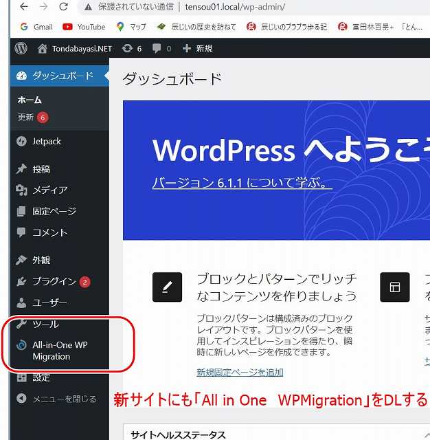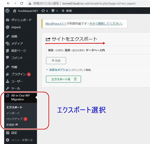ツールに ”All in One WP Migration”が追加された