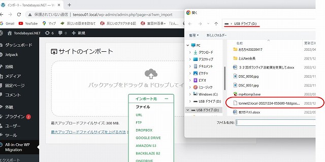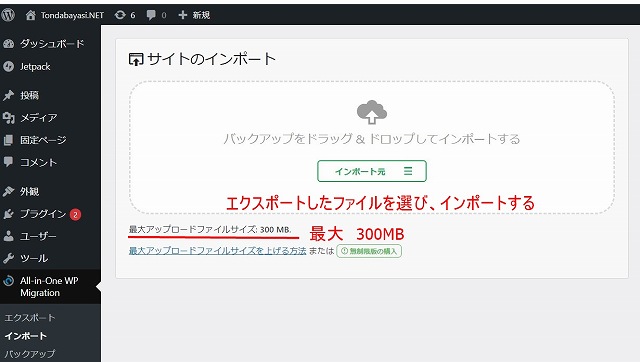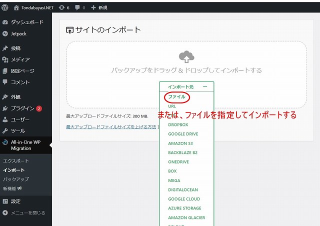 All in One WP Migrasion から インポート選択