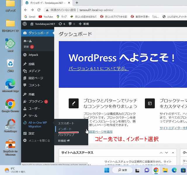 コピー先のPCに新しいサイトを作成し、プラグイン All in One WP Migrationを