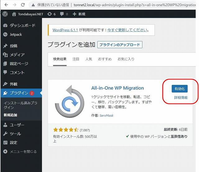 2.プラグインソフト All in One WP MigrationをDLする