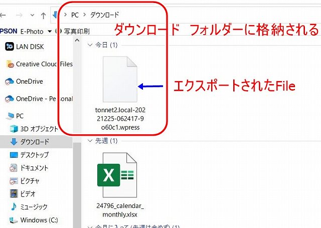 DLファイルは、PCのダウンロードに格納される
