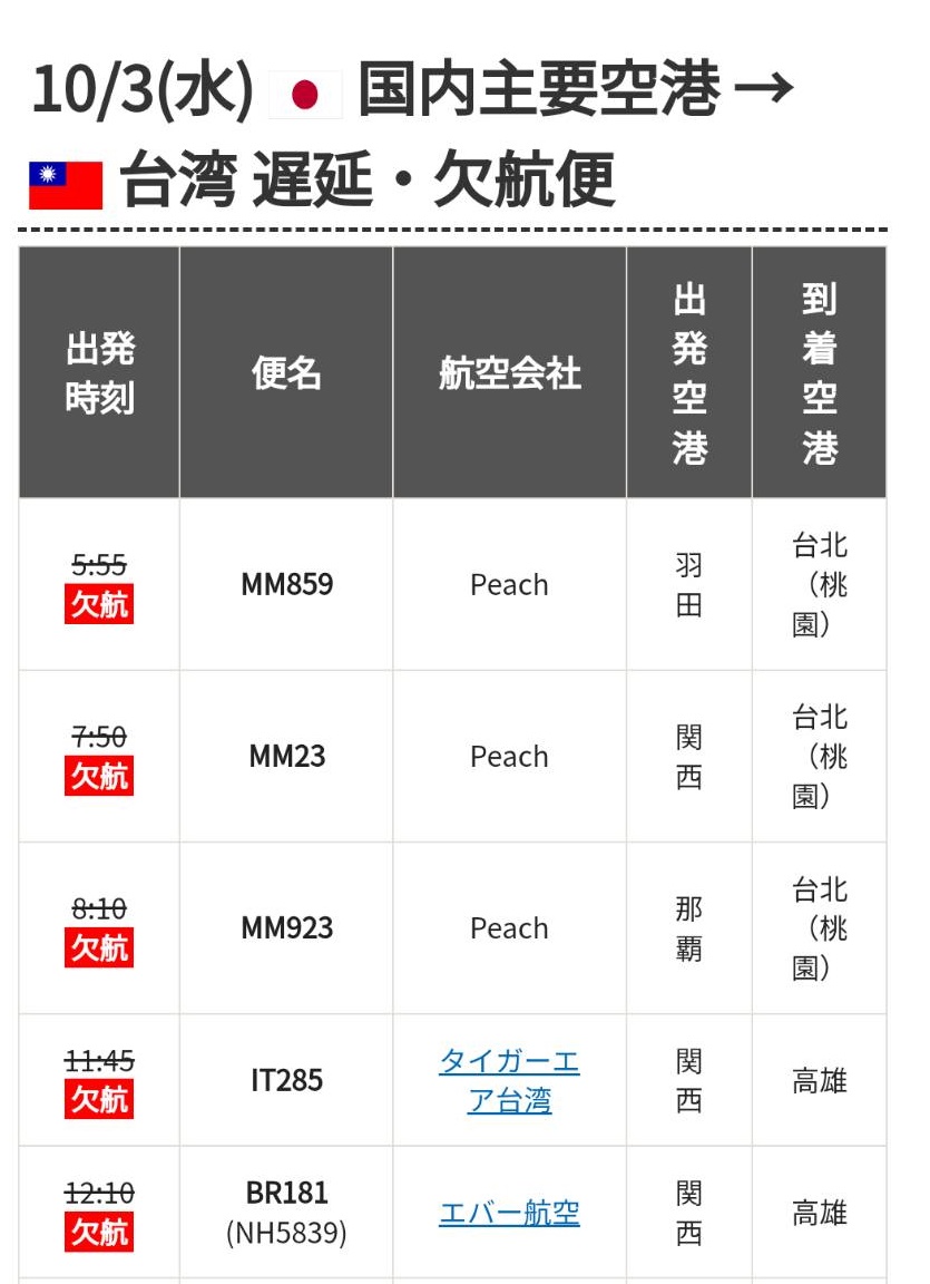 昨日から今日にかけて、台湾行きの航空便はほぼ欠航しています。